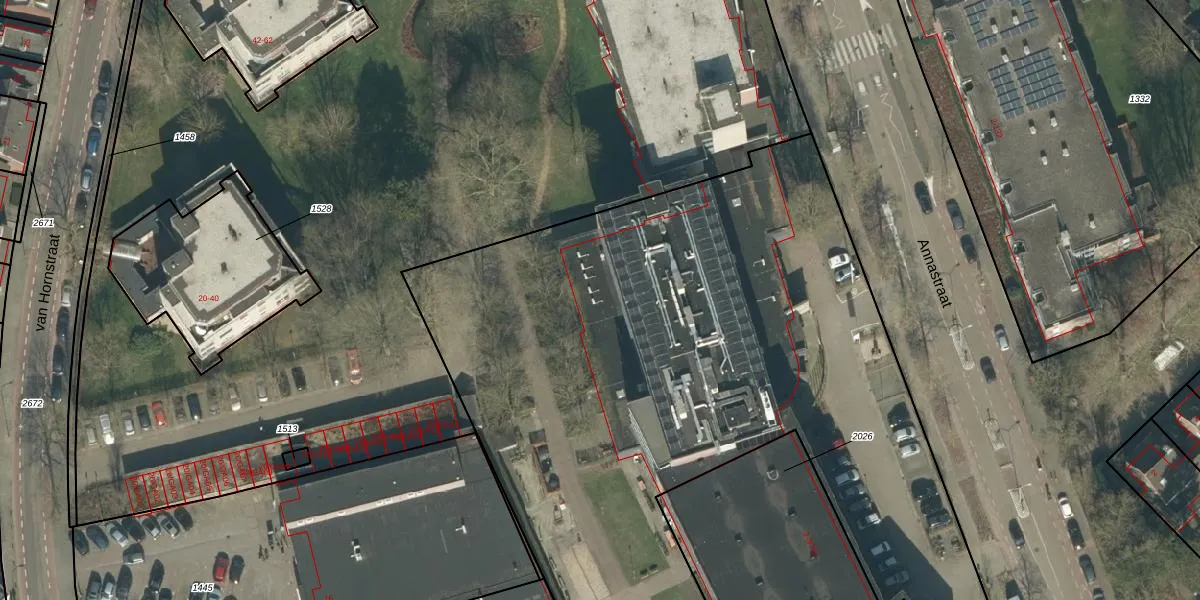 Het perceel waarop Annastraat 5-407 staat heeft een oppervlakte van 6369 m². Dit is een zeer groot perceel. De perceeloppervlakte wordt geregistreerd door het Kadaster. Gedetailleerde informatie over de maten van dit perceel kunt u vinden in het rapport Kadastrale kaart met maatvoering van Annastraat 5-407.