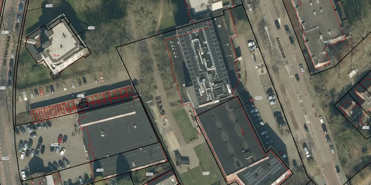 Het perceel waarop Annastraat 5-410 staat heeft een oppervlakte van 6369 m². Dit is een zeer groot perceel. De perceeloppervlakte wordt geregistreerd door het Kadaster. Gedetailleerde informatie over de maten van dit perceel kunt u vinden in het rapport Kadastrale kaart met maatvoering van Annastraat 5-410.