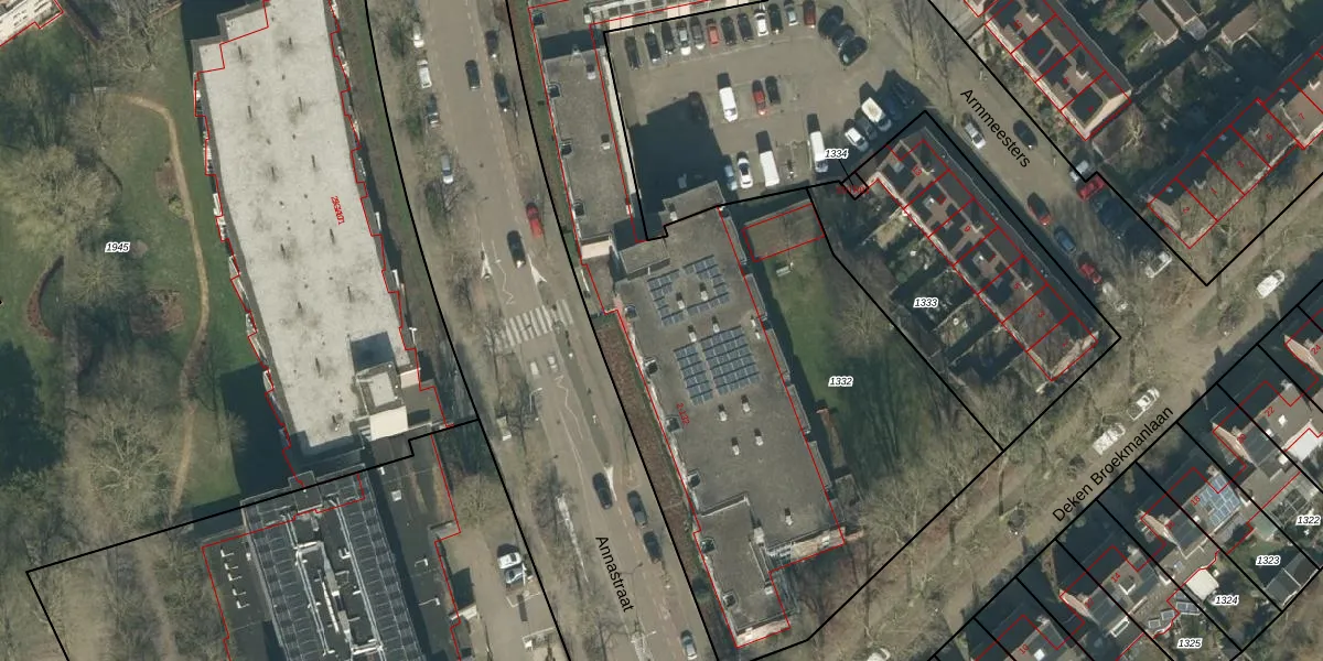 Het perceel waarop Annastraat 56 staat heeft een oppervlakte van 3569 m². Dit is een zeer groot perceel. De perceeloppervlakte wordt geregistreerd door het Kadaster. Gedetailleerde informatie over de maten van dit perceel kunt u vinden in het rapport Kadastrale kaart met maatvoering van Annastraat 56.