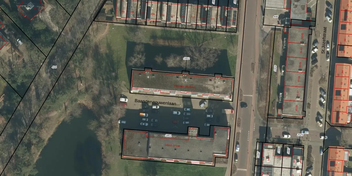 Baandervrouwenlaan 181 is gelegen op kadastraal perceel BTL00M1852. Deze kadastrale aanduiding is uniek en wordt gebruikt door het Kadaster om eigendomsrechten en andere zakelijke rechten vast te leggen. Het perceel maakt onderdeel uit van de kadastrale gemeente Boxtel.