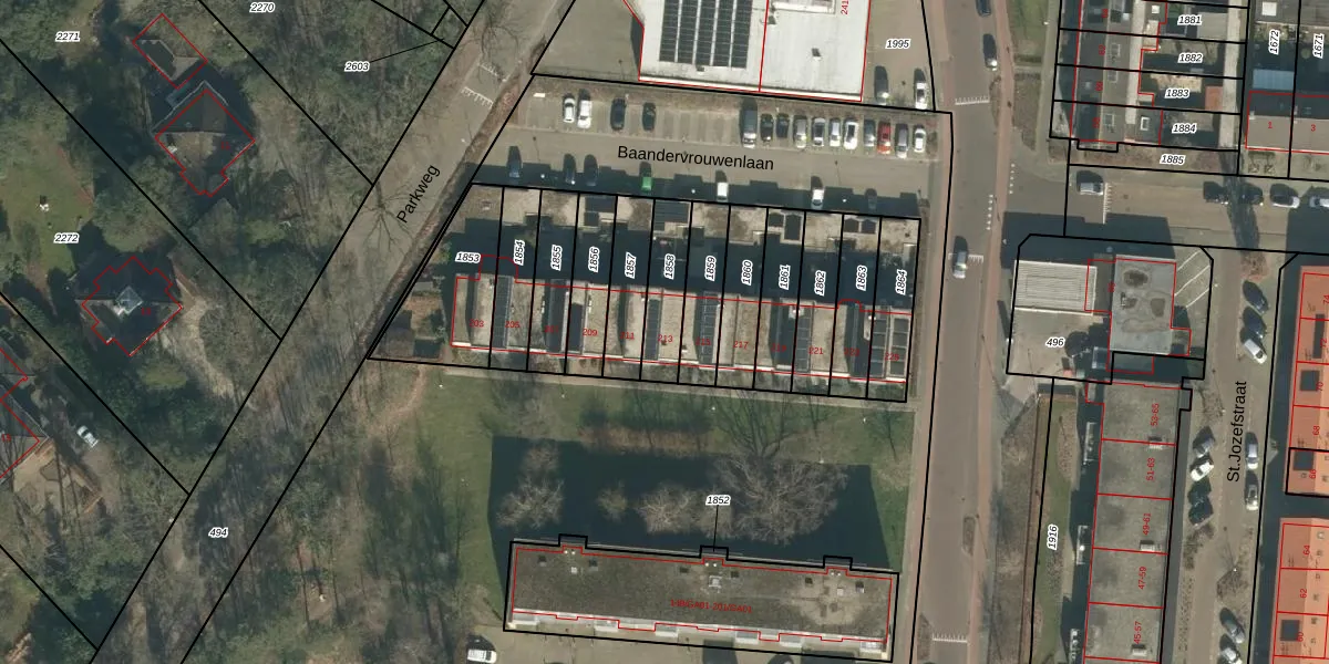 Baandervrouwenlaan 213 is gelegen op kadastraal perceel BTL00M1858. Deze kadastrale aanduiding is uniek en wordt gebruikt door het Kadaster om eigendomsrechten en andere zakelijke rechten vast te leggen. Het perceel maakt onderdeel uit van de kadastrale gemeente Boxtel.