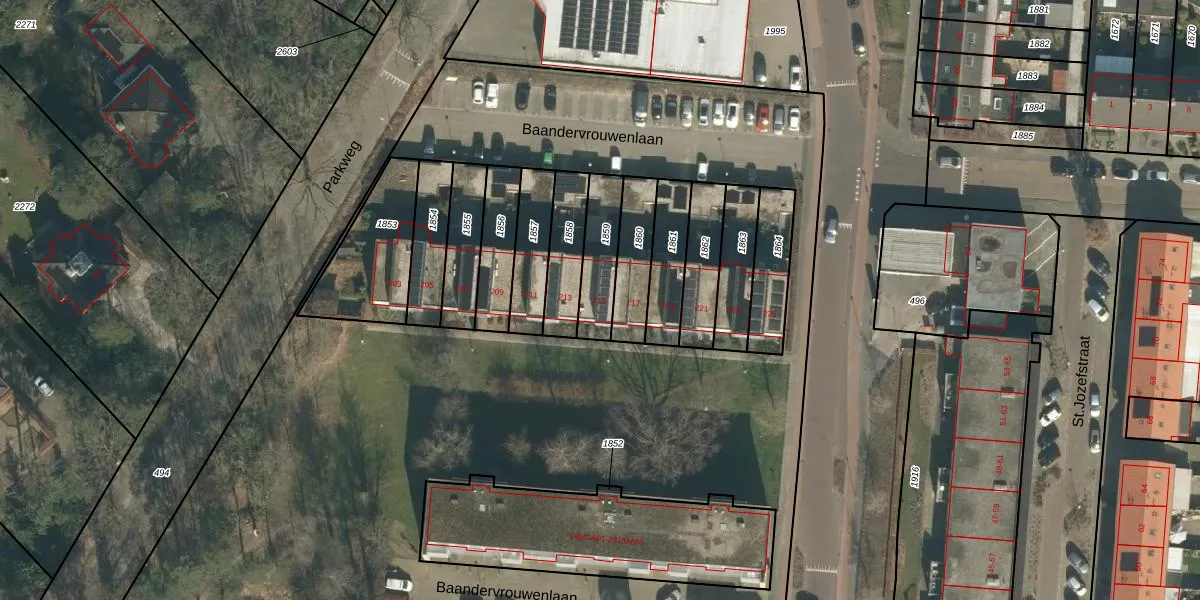Gebruik de zoekbalk of klik op een perceel voor informatie over de adressen binnen dit perceel.