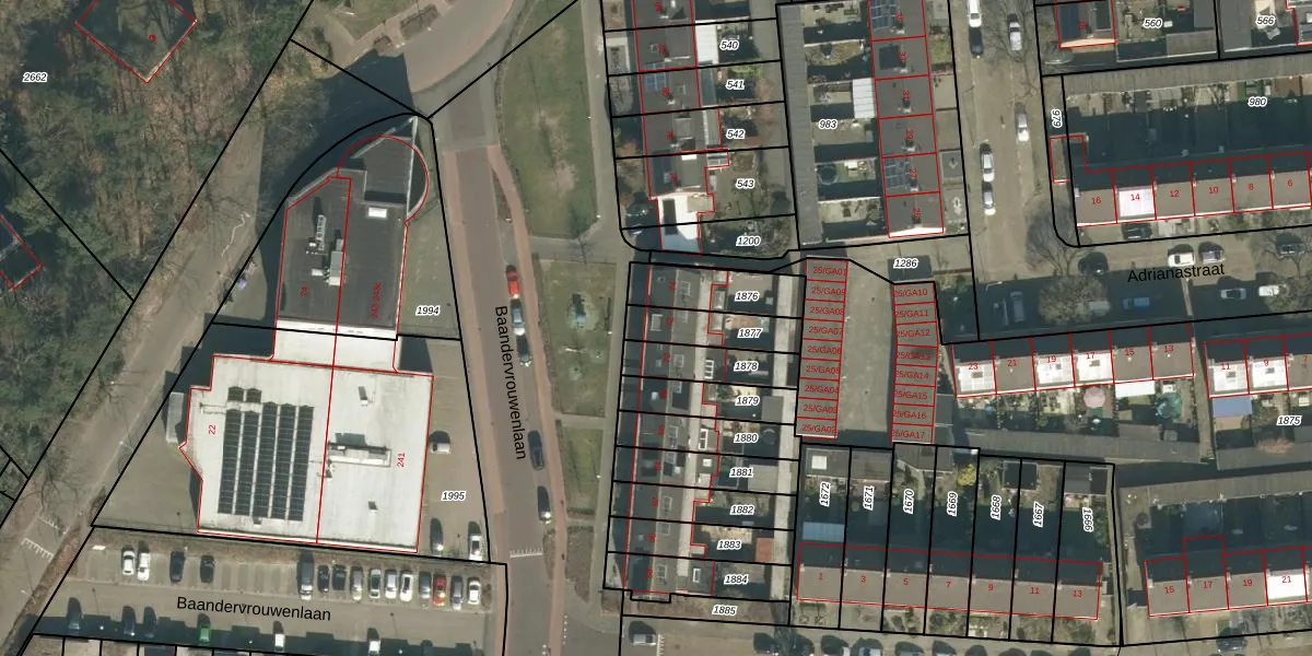 Baandervrouwenlaan 72 is gelegen op kadastraal perceel BTL00M1877. Deze kadastrale aanduiding is uniek en wordt gebruikt door het Kadaster om eigendomsrechten en andere zakelijke rechten vast te leggen. Het perceel maakt onderdeel uit van de kadastrale gemeente Boxtel.