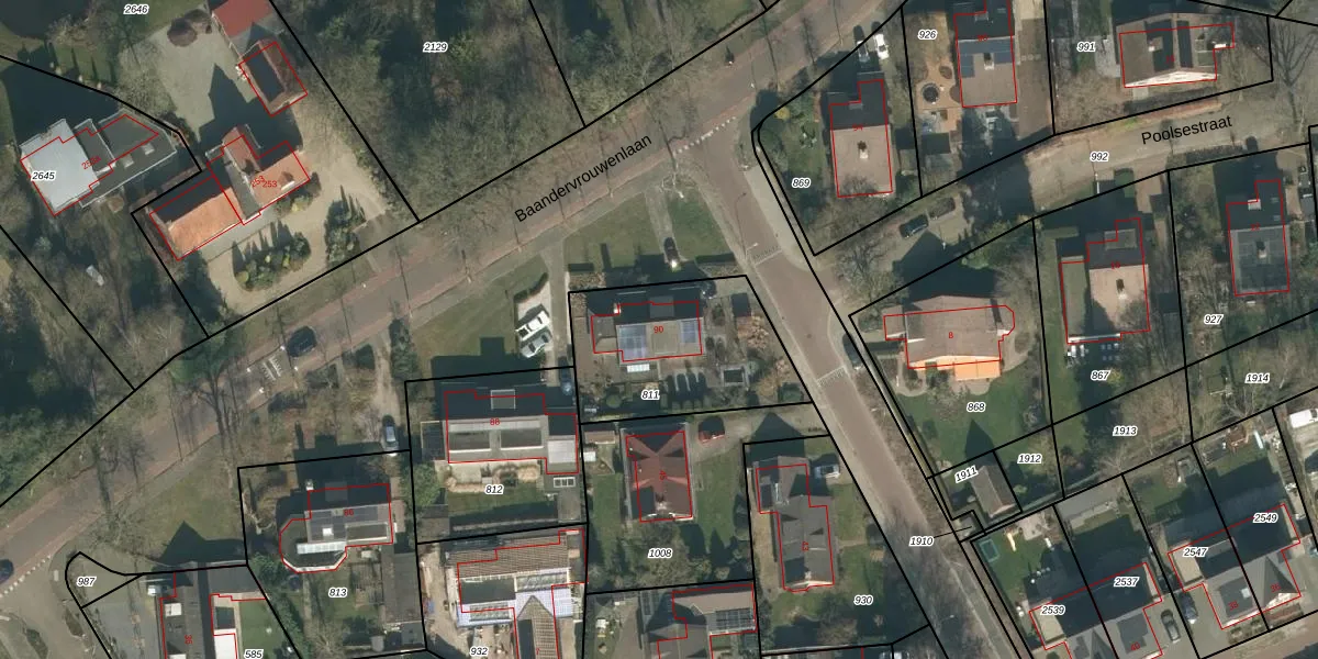 Baandervrouwenlaan 90 is gelegen op kadastraal perceel BTL00M811. Deze kadastrale aanduiding is uniek en wordt gebruikt door het Kadaster om eigendomsrechten en andere zakelijke rechten vast te leggen. Het perceel maakt onderdeel uit van de kadastrale gemeente Boxtel.