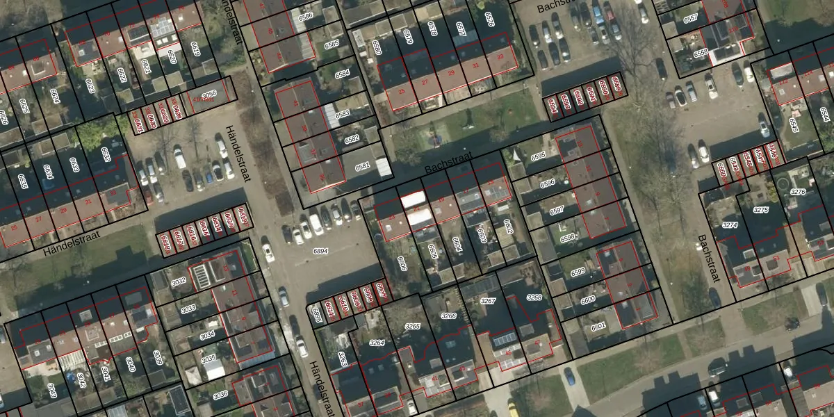 Gebruik de zoekbalk of klik op een perceel voor informatie over de adressen binnen dit perceel.