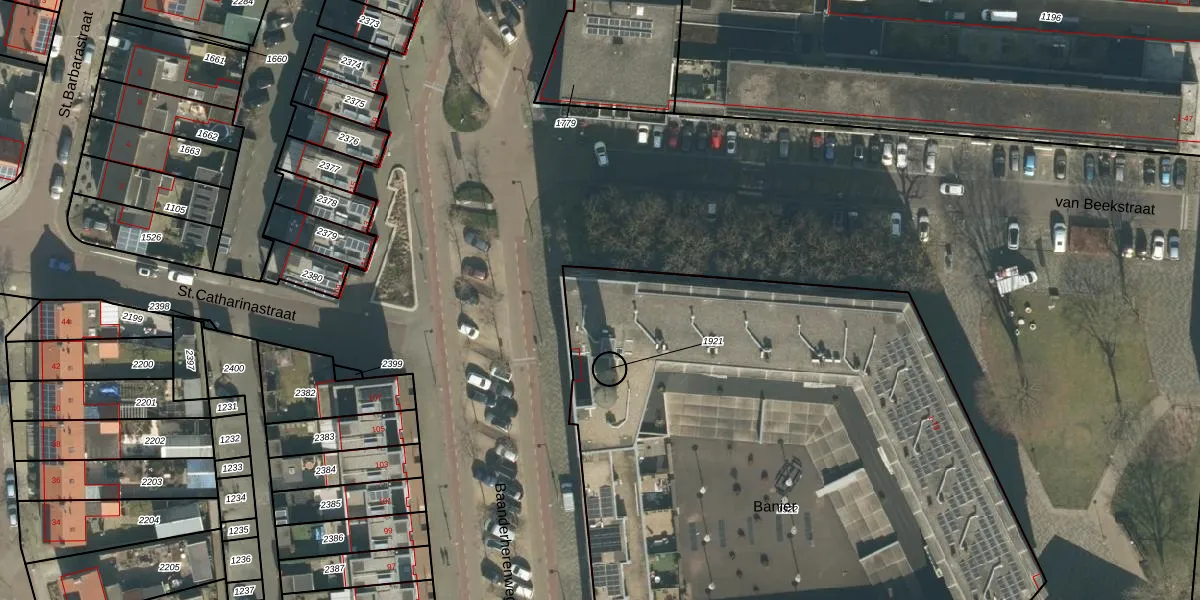 Het perceel waarop Banier 26 staat heeft een oppervlakte van 4941 m². Dit is een zeer groot perceel. De perceeloppervlakte wordt geregistreerd door het Kadaster. Gedetailleerde informatie over de maten van dit perceel kunt u vinden in het rapport Kadastrale kaart met maatvoering van Banier 26.