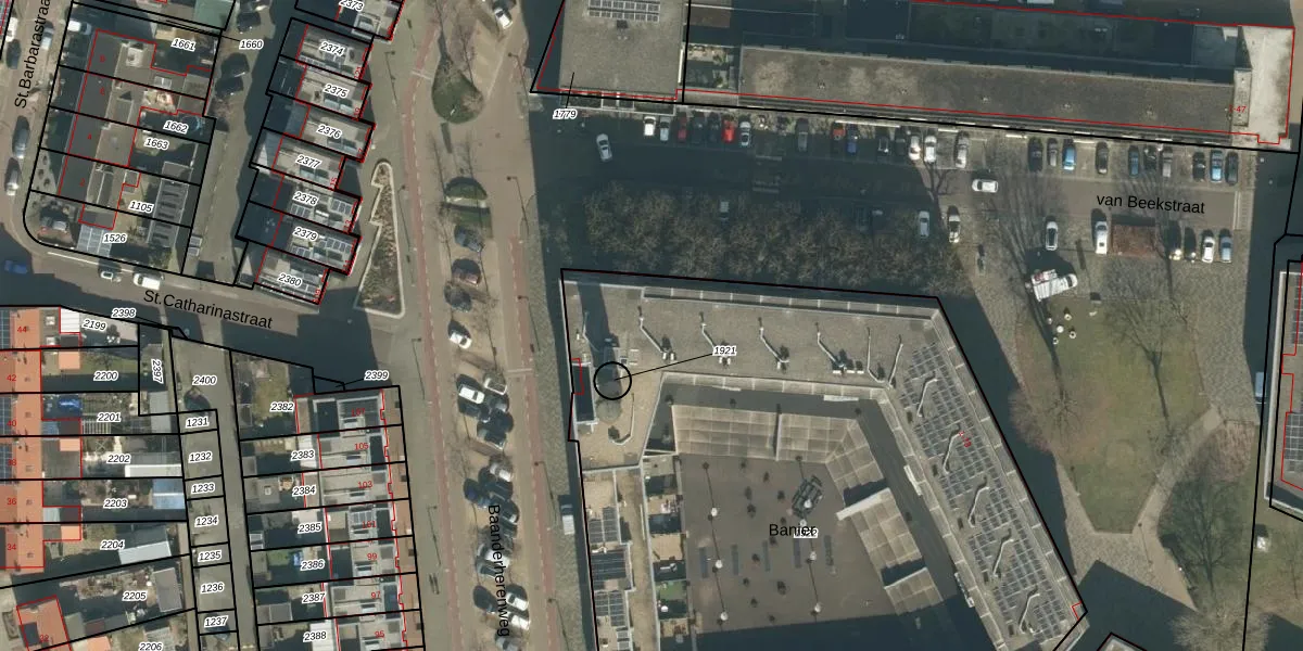 Het perceel waarop Banier 39 staat heeft een oppervlakte van 4941 m². Dit is een zeer groot perceel. De perceeloppervlakte wordt geregistreerd door het Kadaster. Gedetailleerde informatie over de maten van dit perceel kunt u vinden in het rapport Kadastrale kaart met maatvoering van Banier 39.