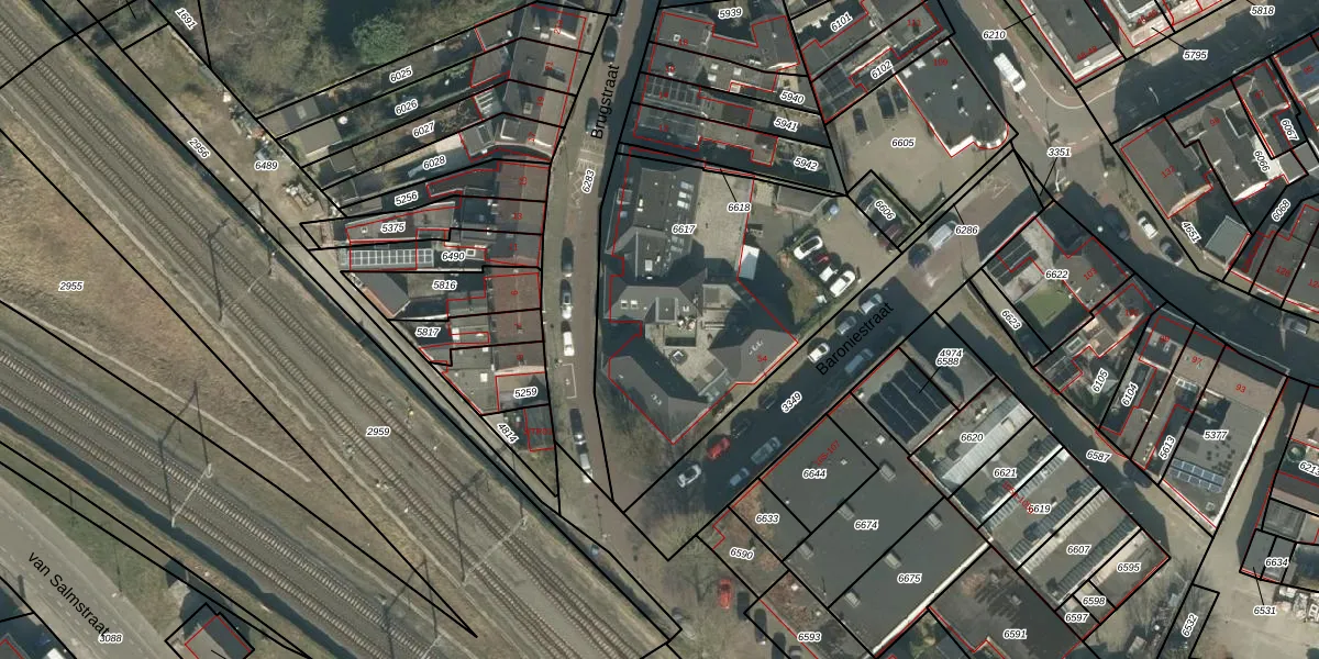 Het perceel waarop Brugstraat 6 staat heeft een oppervlakte van 1412 m². Dit is een zeer groot perceel. De perceeloppervlakte wordt geregistreerd door het Kadaster. Gedetailleerde informatie over de maten van dit perceel kunt u vinden in het rapport Kadastrale kaart met maatvoering van Brugstraat 6.