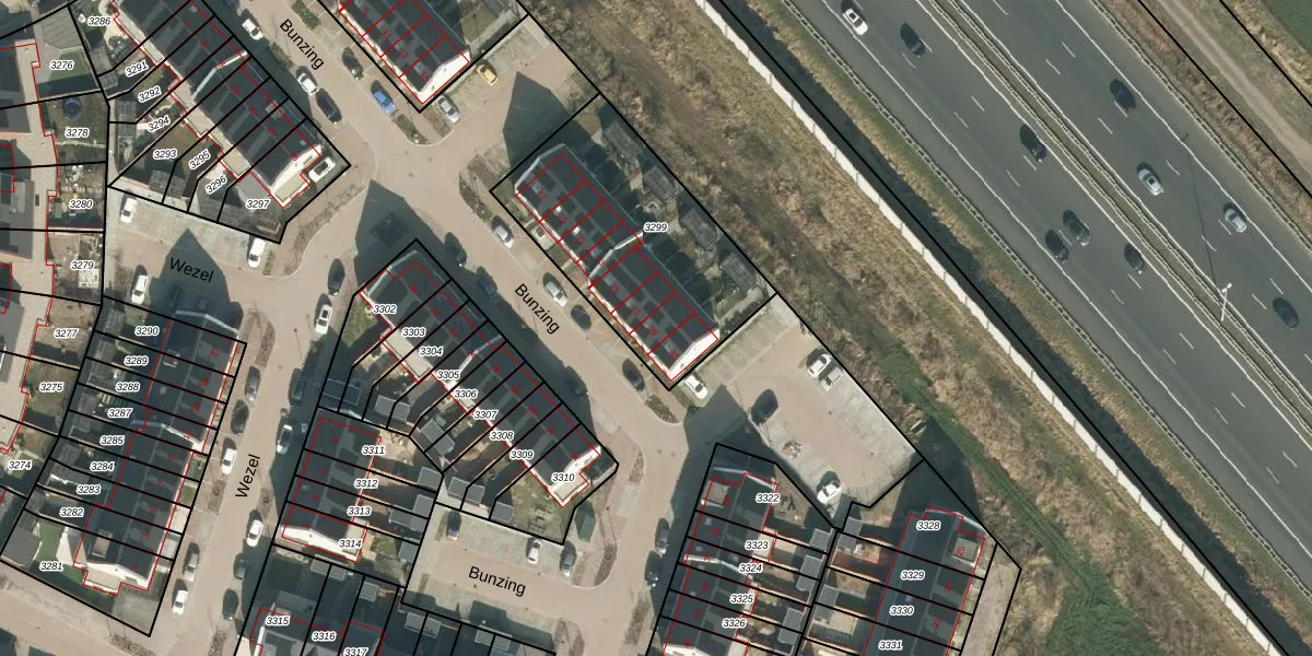 Het perceel waarop Bunzing 29 staat heeft een oppervlakte van 915 m². Dit is een groot perceel. De perceeloppervlakte wordt geregistreerd door het Kadaster. Gedetailleerde informatie over de maten van dit perceel kunt u vinden in het rapport Kadastrale kaart met maatvoering van Bunzing 29.