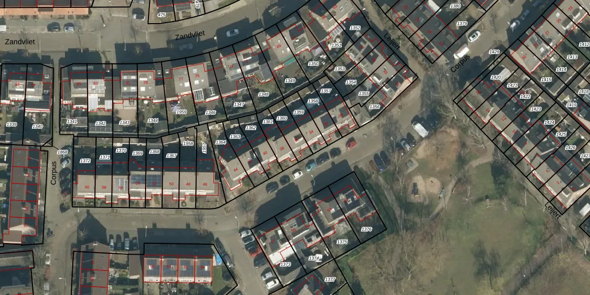 Het perceel waarop Corpus 36 staat heeft een oppervlakte van 121 m². Dit is een middelgroot perceel. De perceeloppervlakte wordt geregistreerd door het Kadaster. Gedetailleerde informatie over de maten van dit perceel kunt u vinden in het rapport Kadastrale kaart met maatvoering van Corpus 36.