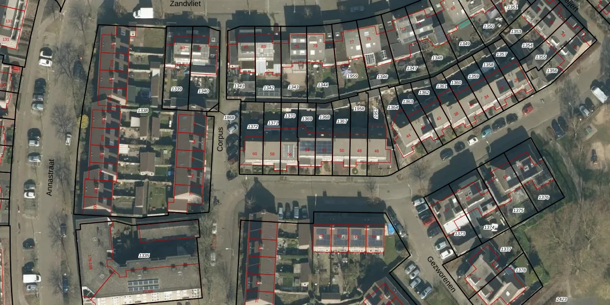 Het perceel waarop Corpus 54 staat heeft een oppervlakte van 136 m². Dit is een middelgroot perceel. De perceeloppervlakte wordt geregistreerd door het Kadaster. Gedetailleerde informatie over de maten van dit perceel kunt u vinden in het rapport Kadastrale kaart met maatvoering van Corpus 54.