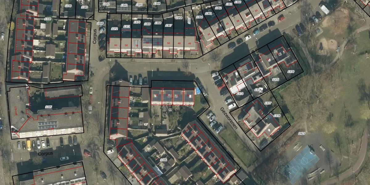 Het perceel waarop Corpus 59 staat heeft een oppervlakte van 4938 m². Dit is een zeer groot perceel. De perceeloppervlakte wordt geregistreerd door het Kadaster. Gedetailleerde informatie over de maten van dit perceel kunt u vinden in het rapport Kadastrale kaart met maatvoering van Corpus 59.