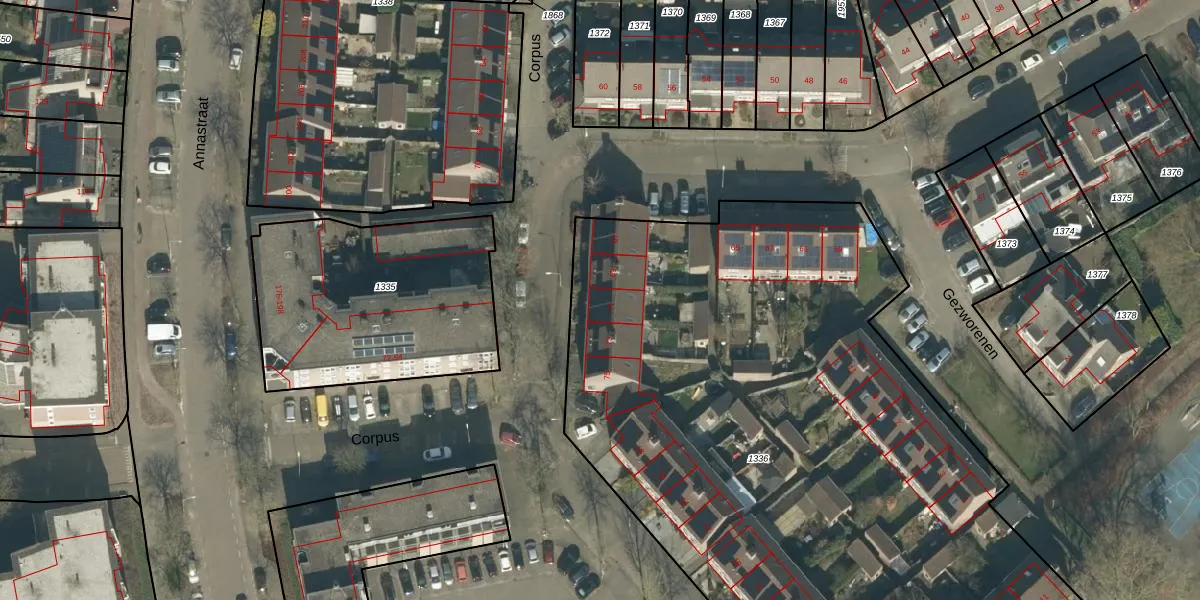 Het perceel waarop Corpus 71 staat heeft een oppervlakte van 4938 m². Dit is een zeer groot perceel. De perceeloppervlakte wordt geregistreerd door het Kadaster. Gedetailleerde informatie over de maten van dit perceel kunt u vinden in het rapport Kadastrale kaart met maatvoering van Corpus 71.