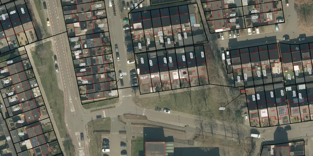 Gebruik de zoekbalk of klik op een perceel voor informatie over de adressen binnen dit perceel.