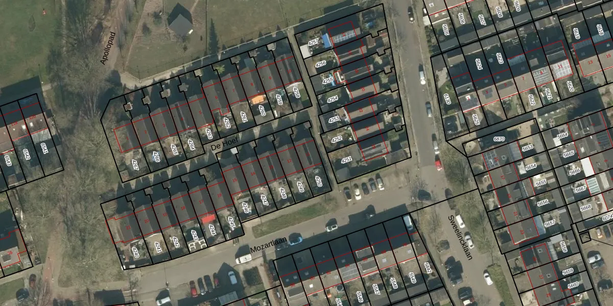 Gebruik de zoekbalk of klik op een perceel voor informatie over de adressen binnen dit perceel.