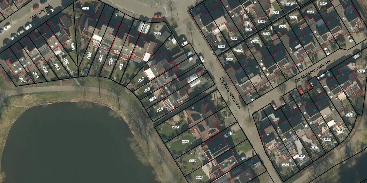 Het perceel waarop De Kaarsenmaker 8 staat heeft een oppervlakte van 323 m². Dit is een groot perceel. De perceeloppervlakte wordt geregistreerd door het Kadaster. Gedetailleerde informatie over de maten van dit perceel kunt u vinden in het rapport Kadastrale kaart met maatvoering van De Kaarsenmaker 8.