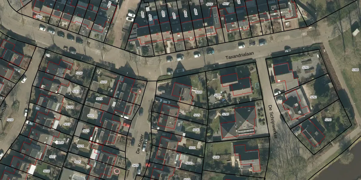 Het perceel waarop De Kuiper 1 staat heeft een oppervlakte van 404 m². Dit is een groot perceel. De perceeloppervlakte wordt geregistreerd door het Kadaster. Gedetailleerde informatie over de maten van dit perceel kunt u vinden in het rapport Kadastrale kaart met maatvoering van De Kuiper 1.