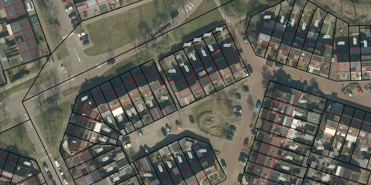 Gebruik de zoekbalk of klik op een perceel voor informatie over de adressen binnen dit perceel.