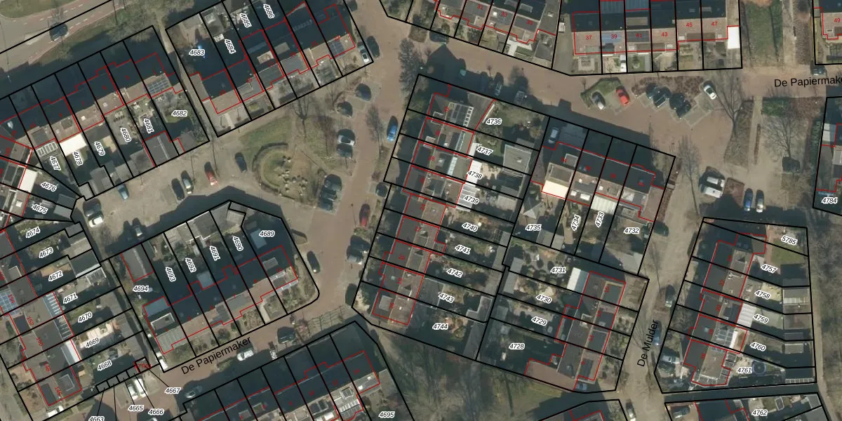 Het perceel waarop De Papiermaker 24 staat heeft een oppervlakte van 187 m². Dit is een middelgroot perceel. De perceeloppervlakte wordt geregistreerd door het Kadaster. Gedetailleerde informatie over de maten van dit perceel kunt u vinden in het rapport Kadastrale kaart met maatvoering van De Papiermaker 24.