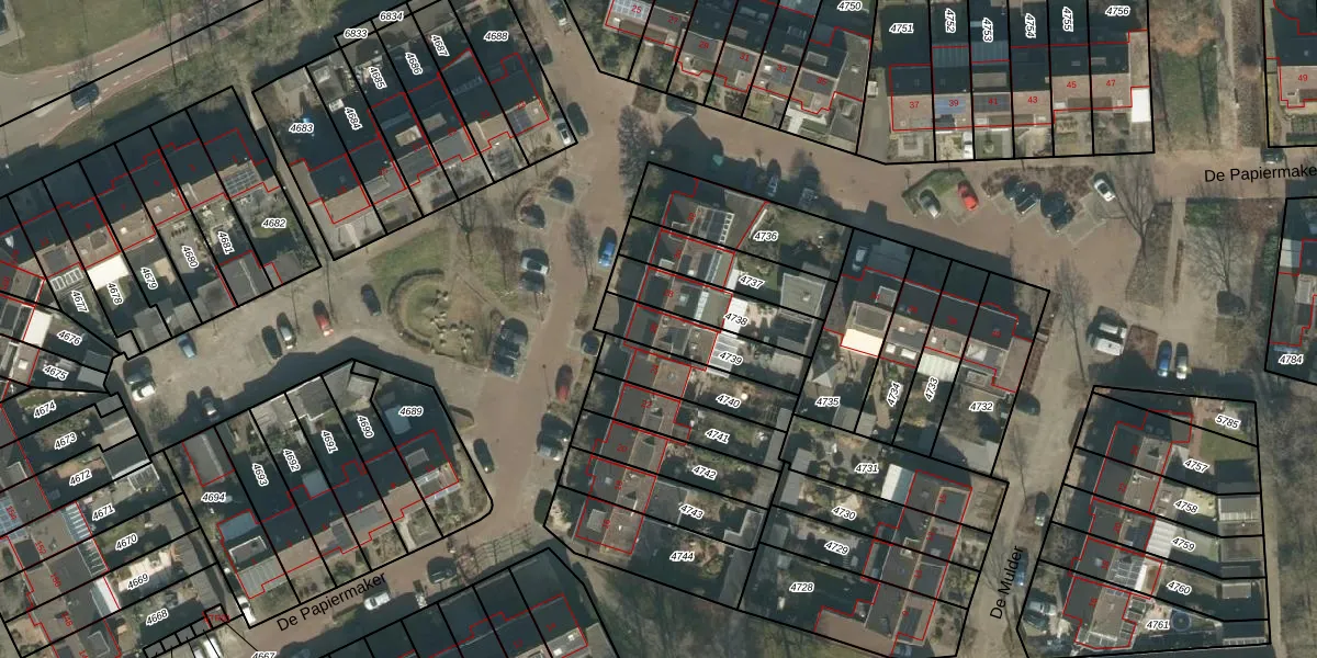 Het perceel waarop De Papiermaker 26 staat heeft een oppervlakte van 200 m². Dit is een middelgroot perceel. De perceeloppervlakte wordt geregistreerd door het Kadaster. Gedetailleerde informatie over de maten van dit perceel kunt u vinden in het rapport Kadastrale kaart met maatvoering van De Papiermaker 26.