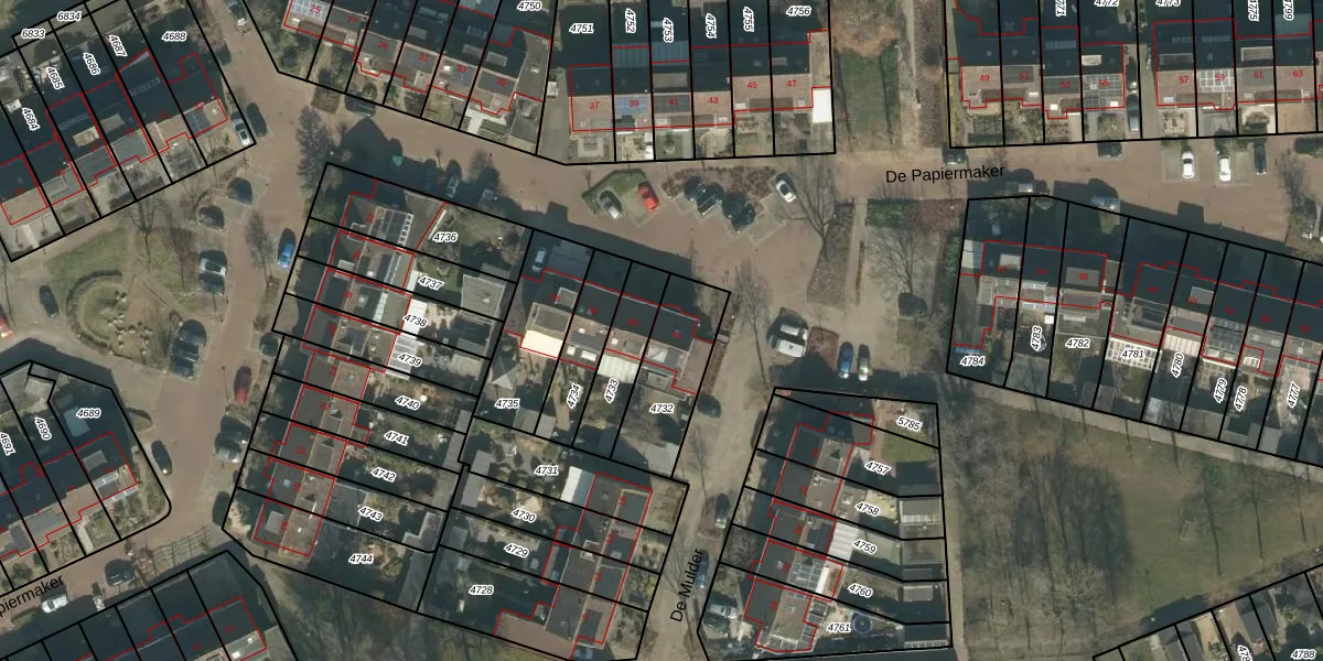 Het perceel waarop De Papiermaker 40 staat heeft een oppervlakte van 287 m². Dit is een middelgroot perceel. De perceeloppervlakte wordt geregistreerd door het Kadaster. Gedetailleerde informatie over de maten van dit perceel kunt u vinden in het rapport Kadastrale kaart met maatvoering van De Papiermaker 40.