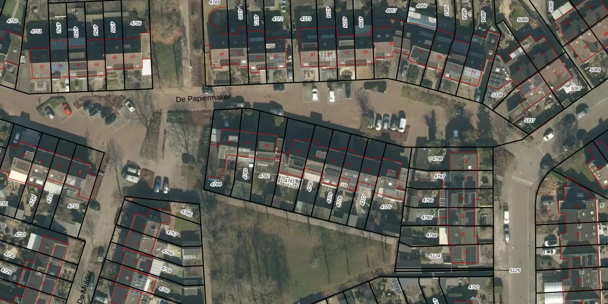 Het perceel waarop De Papiermaker 48 staat heeft een oppervlakte van 249 m². Dit is een middelgroot perceel. De perceeloppervlakte wordt geregistreerd door het Kadaster. Gedetailleerde informatie over de maten van dit perceel kunt u vinden in het rapport Kadastrale kaart met maatvoering van De Papiermaker 48.
