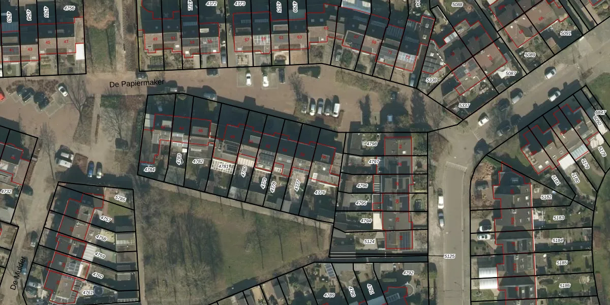 Gebruik de zoekbalk of klik op een perceel voor informatie over de adressen binnen dit perceel.