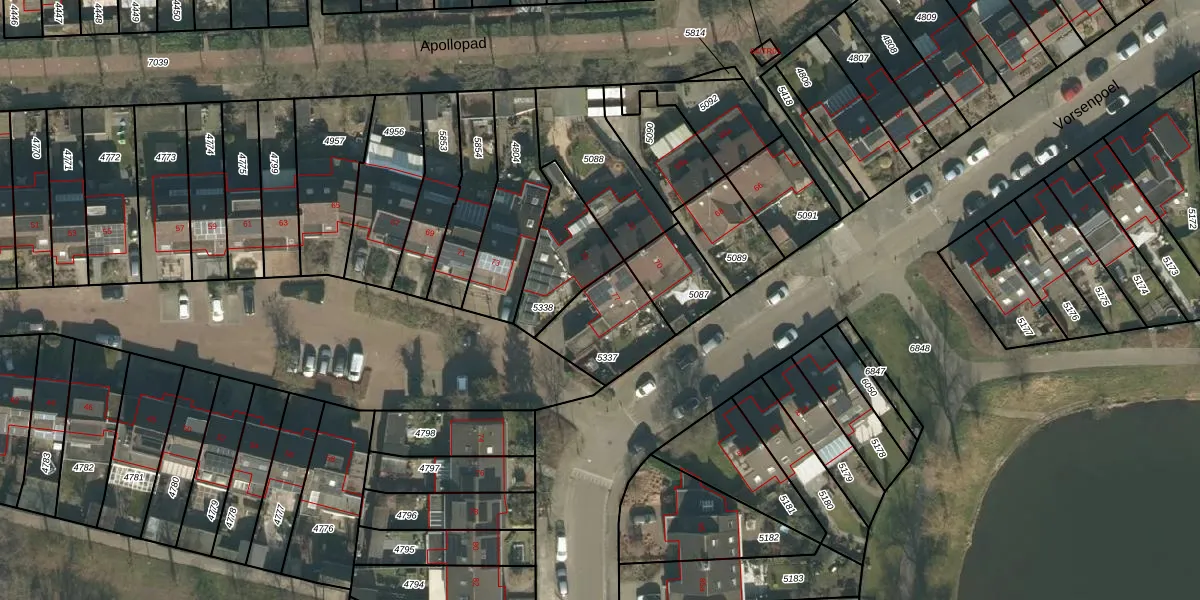 Gebruik de zoekbalk of klik op een perceel voor informatie over de adressen binnen dit perceel.