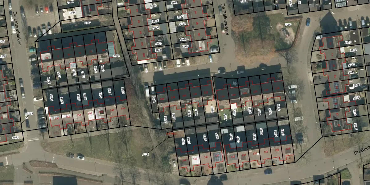 Gebruik de zoekbalk of klik op een perceel voor informatie over de adressen binnen dit perceel.