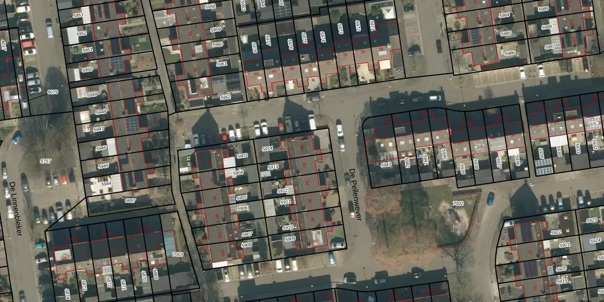 Gebruik de zoekbalk of klik op een perceel voor informatie over de adressen binnen dit perceel.