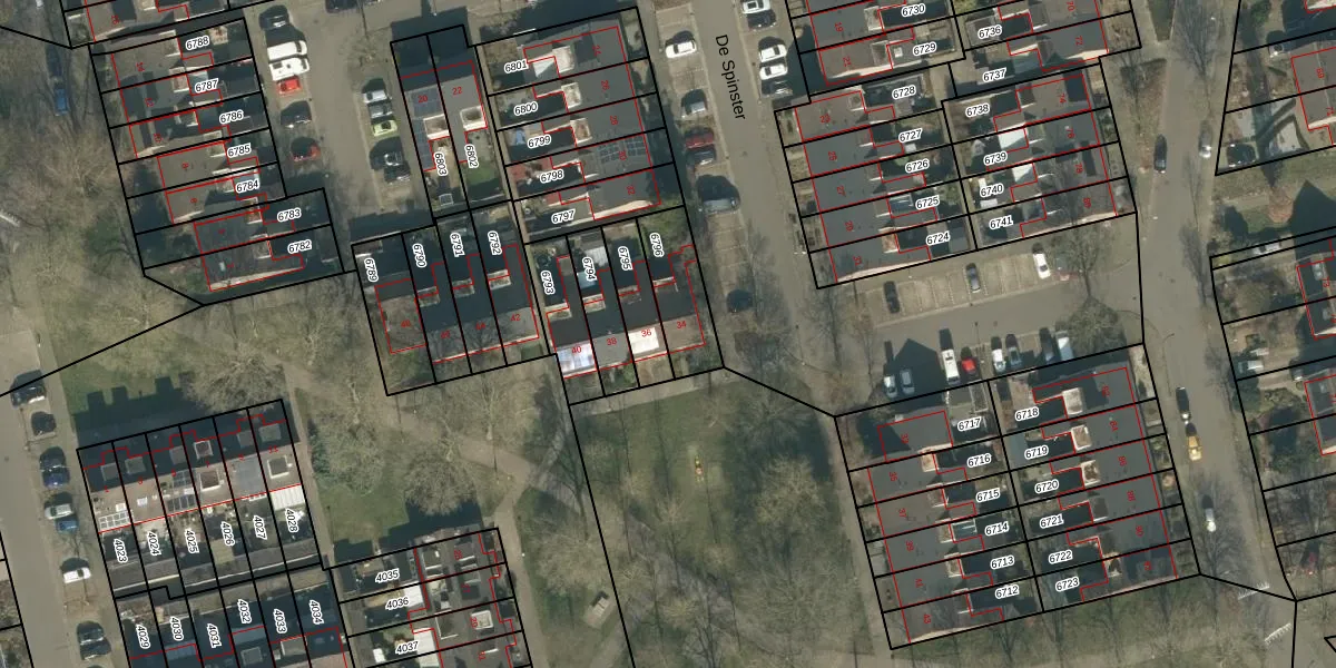 Het perceel waarop De Spinster 34 staat heeft een oppervlakte van 188 m². Dit is een middelgroot perceel. De perceeloppervlakte wordt geregistreerd door het Kadaster. Gedetailleerde informatie over de maten van dit perceel kunt u vinden in het rapport Kadastrale kaart met maatvoering van De Spinster 34.