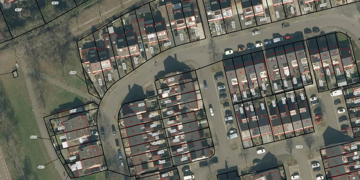 Gebruik de zoekbalk of klik op een perceel voor informatie over de adressen binnen dit perceel.