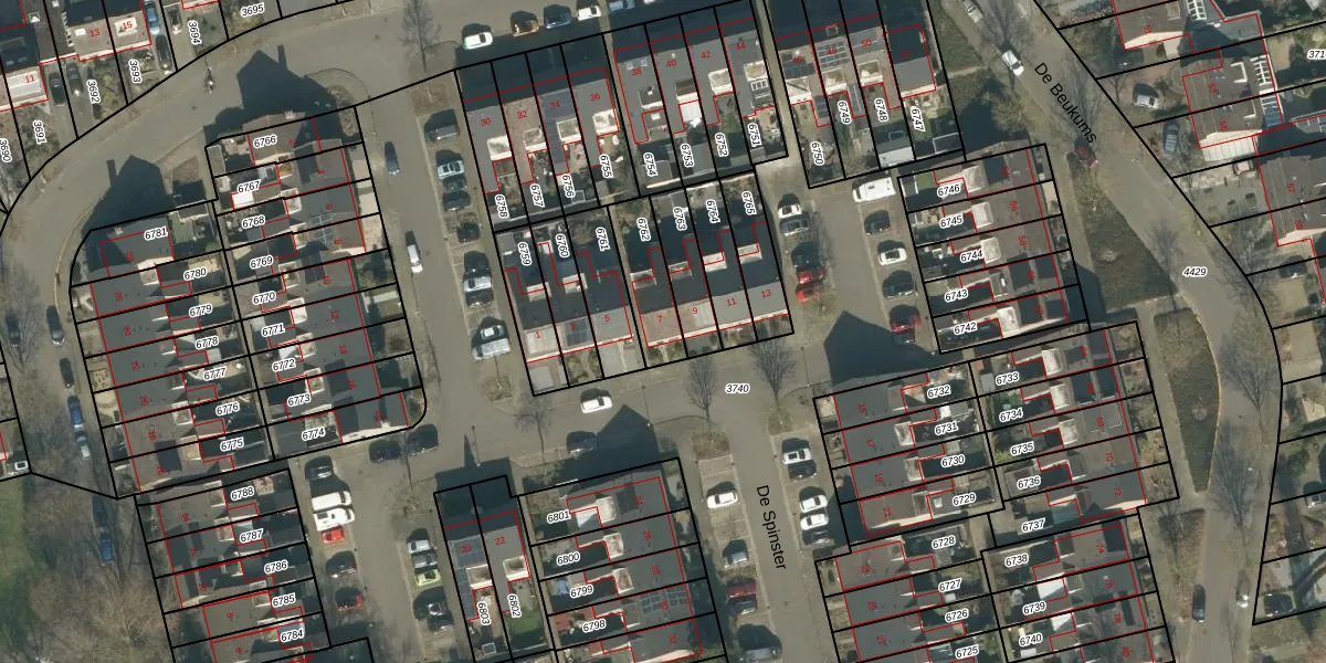 Het perceel waarop De Spinster 7 staat heeft een oppervlakte van 165 m². Dit is een middelgroot perceel. De perceeloppervlakte wordt geregistreerd door het Kadaster. Gedetailleerde informatie over de maten van dit perceel kunt u vinden in het rapport Kadastrale kaart met maatvoering van De Spinster 7.