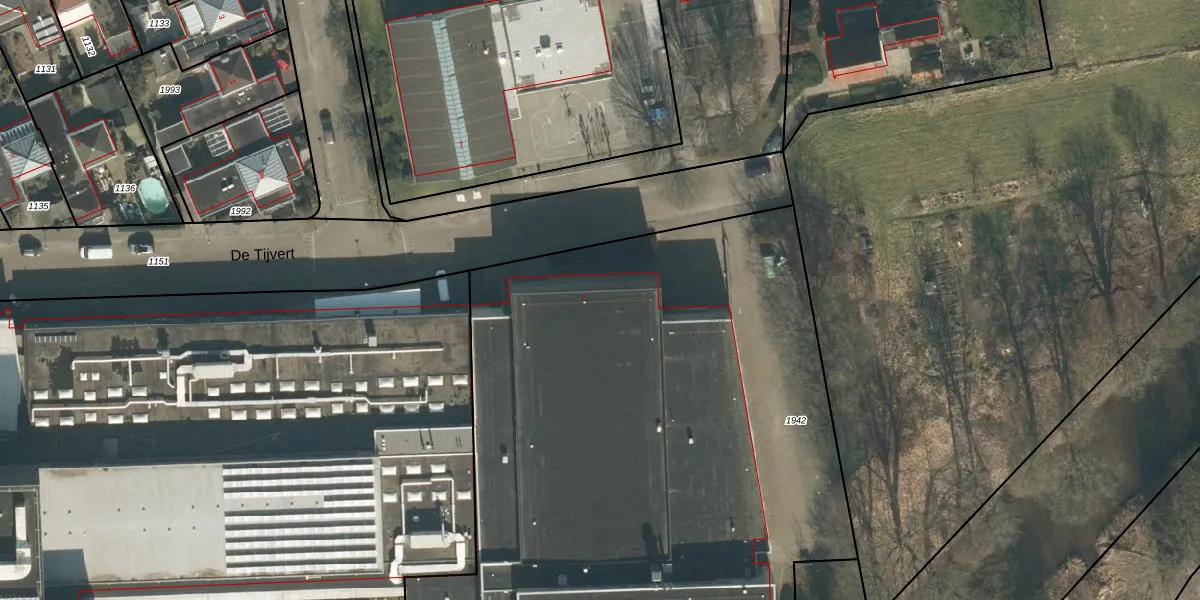 Het perceel waarop De Tijvert 2 staat heeft een oppervlakte van 4137 m². Dit is een zeer groot perceel. De perceeloppervlakte wordt geregistreerd door het Kadaster. Gedetailleerde informatie over de maten van dit perceel kunt u vinden in het rapport Kadastrale kaart met maatvoering van De Tijvert 2.