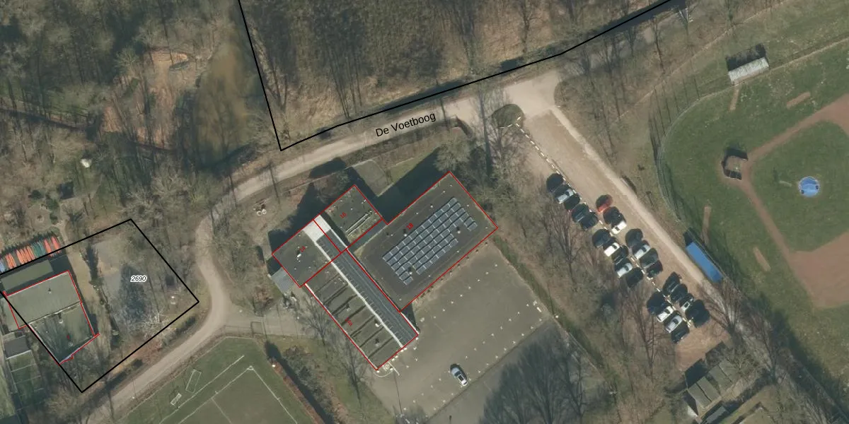 Het perceel waarop De Voetboog 18 staat heeft een oppervlakte van 20,1 ha. Dit is een zeer groot perceel. De perceeloppervlakte wordt geregistreerd door het Kadaster. Gedetailleerde informatie over de maten van dit perceel kunt u vinden in het rapport Kadastrale kaart met maatvoering van De Voetboog 18.
