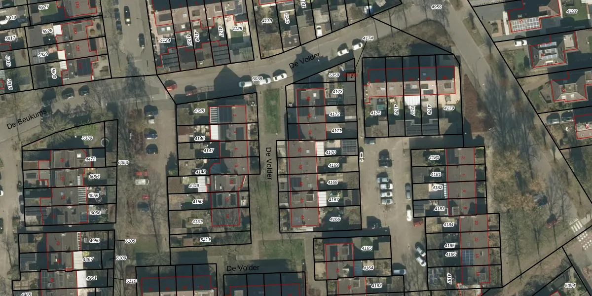 Het perceel waarop De Volder 52 staat heeft een oppervlakte van 158 m². Dit is een middelgroot perceel. De perceeloppervlakte wordt geregistreerd door het Kadaster. Gedetailleerde informatie over de maten van dit perceel kunt u vinden in het rapport Kadastrale kaart met maatvoering van De Volder 52.