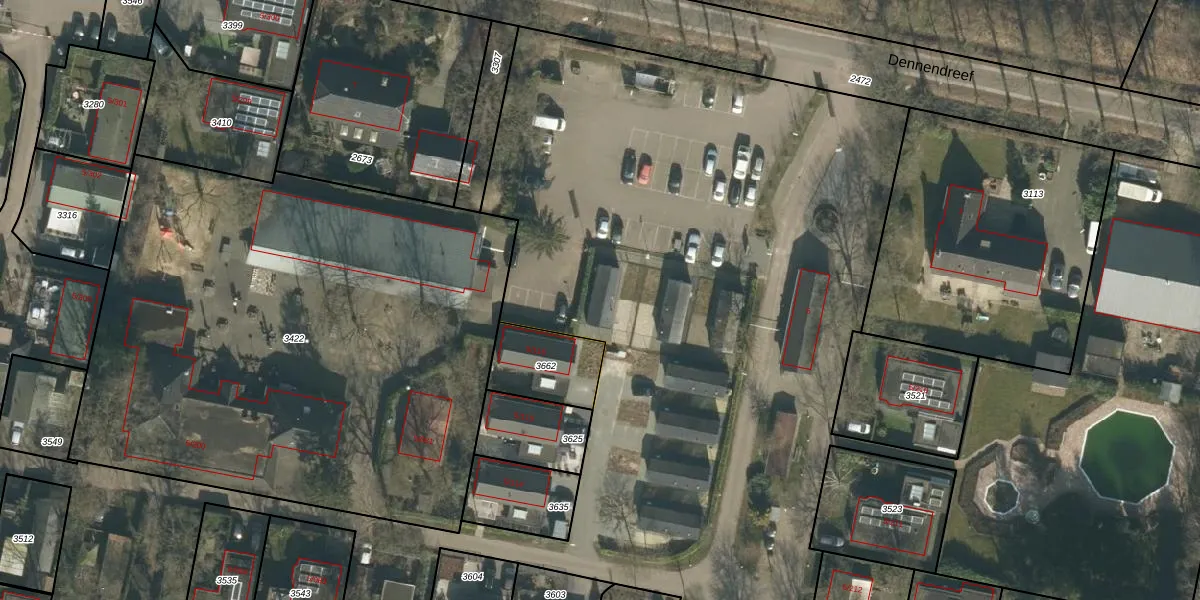 Het perceel waarop Dennendreef 5-117 staat heeft een oppervlakte van 3,6 ha. Dit is een zeer groot perceel. De perceeloppervlakte wordt geregistreerd door het Kadaster. Gedetailleerde informatie over de maten van dit perceel kunt u vinden in het rapport Kadastrale kaart met maatvoering van Dennendreef 5-117.