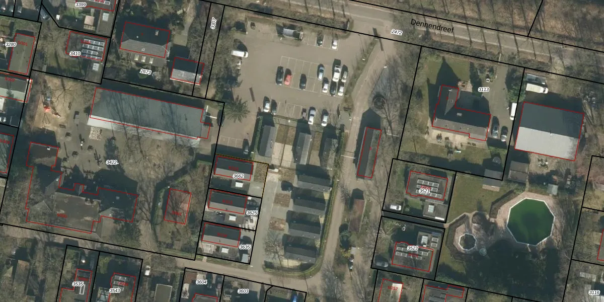 Het perceel waarop Dennendreef 5-118 staat heeft een oppervlakte van 3,6 ha. Dit is een zeer groot perceel. De perceeloppervlakte wordt geregistreerd door het Kadaster. Gedetailleerde informatie over de maten van dit perceel kunt u vinden in het rapport Kadastrale kaart met maatvoering van Dennendreef 5-118.