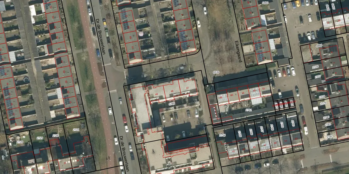 Het perceel waarop Eikengaard 48 staat heeft een oppervlakte van 1610 m². Dit is een zeer groot perceel. De perceeloppervlakte wordt geregistreerd door het Kadaster. Gedetailleerde informatie over de maten van dit perceel kunt u vinden in het rapport Kadastrale kaart met maatvoering van Eikengaard 48.