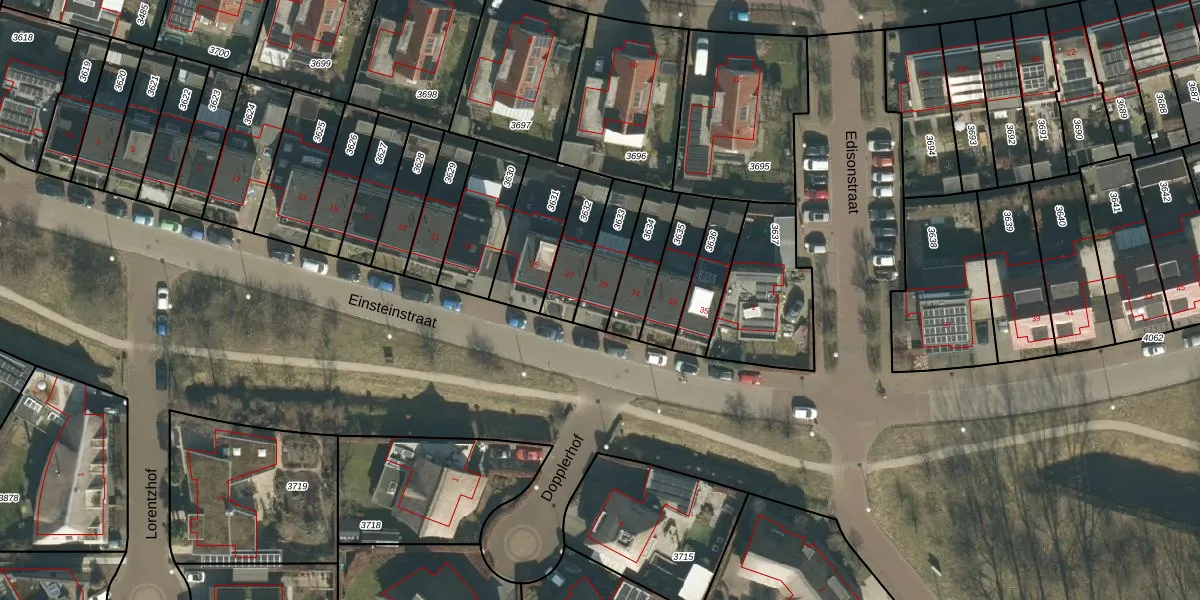 Het perceel waarop Einsteinstraat 29 staat heeft een oppervlakte van 145 m². Dit is een middelgroot perceel. De perceeloppervlakte wordt geregistreerd door het Kadaster. Gedetailleerde informatie over de maten van dit perceel kunt u vinden in het rapport Kadastrale kaart met maatvoering van Einsteinstraat 29.