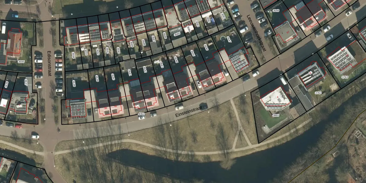 Het perceel waarop Einsteinstraat 49 staat heeft een oppervlakte van 270 m². Dit is een middelgroot perceel. De perceeloppervlakte wordt geregistreerd door het Kadaster. Gedetailleerde informatie over de maten van dit perceel kunt u vinden in het rapport Kadastrale kaart met maatvoering van Einsteinstraat 49.