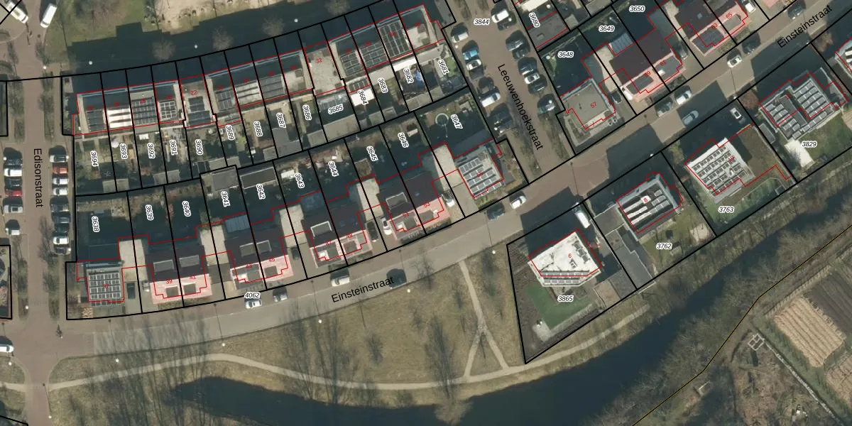 Het perceel waarop Einsteinstraat 53 staat heeft een oppervlakte van 265 m². Dit is een middelgroot perceel. De perceeloppervlakte wordt geregistreerd door het Kadaster. Gedetailleerde informatie over de maten van dit perceel kunt u vinden in het rapport Kadastrale kaart met maatvoering van Einsteinstraat 53.