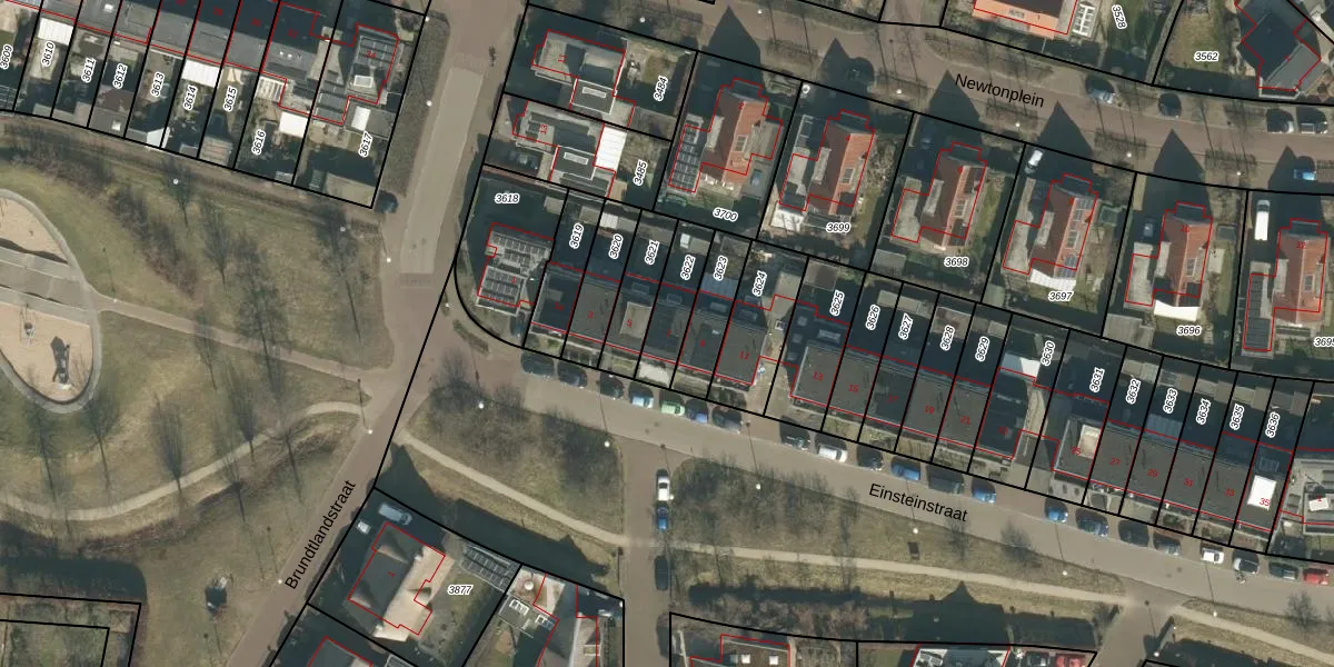 Het perceel waarop Einsteinstraat 7 staat heeft een oppervlakte van 145 m². Dit is een middelgroot perceel. De perceeloppervlakte wordt geregistreerd door het Kadaster. Gedetailleerde informatie over de maten van dit perceel kunt u vinden in het rapport Kadastrale kaart met maatvoering van Einsteinstraat 7.