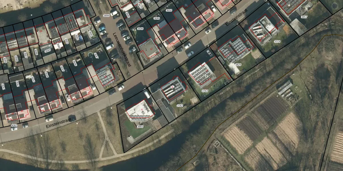 Het perceel waarop Einsteinstraat 8 staat heeft een oppervlakte van 538 m². Dit is een groot perceel. De perceeloppervlakte wordt geregistreerd door het Kadaster. Gedetailleerde informatie over de maten van dit perceel kunt u vinden in het rapport Kadastrale kaart met maatvoering van Einsteinstraat 8.