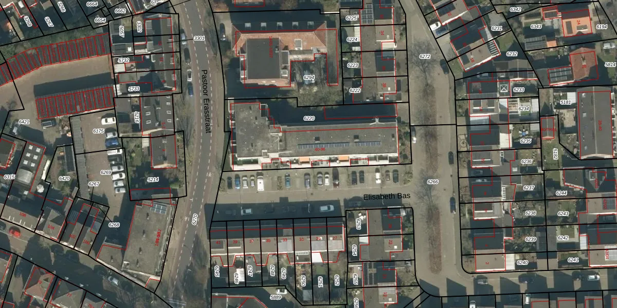 Het perceel waarop Elisabeth Bas 94 staat heeft een oppervlakte van 1273 m². Dit is een zeer groot perceel. De perceeloppervlakte wordt geregistreerd door het Kadaster. Gedetailleerde informatie over de maten van dit perceel kunt u vinden in het rapport Kadastrale kaart met maatvoering van Elisabeth Bas 94.