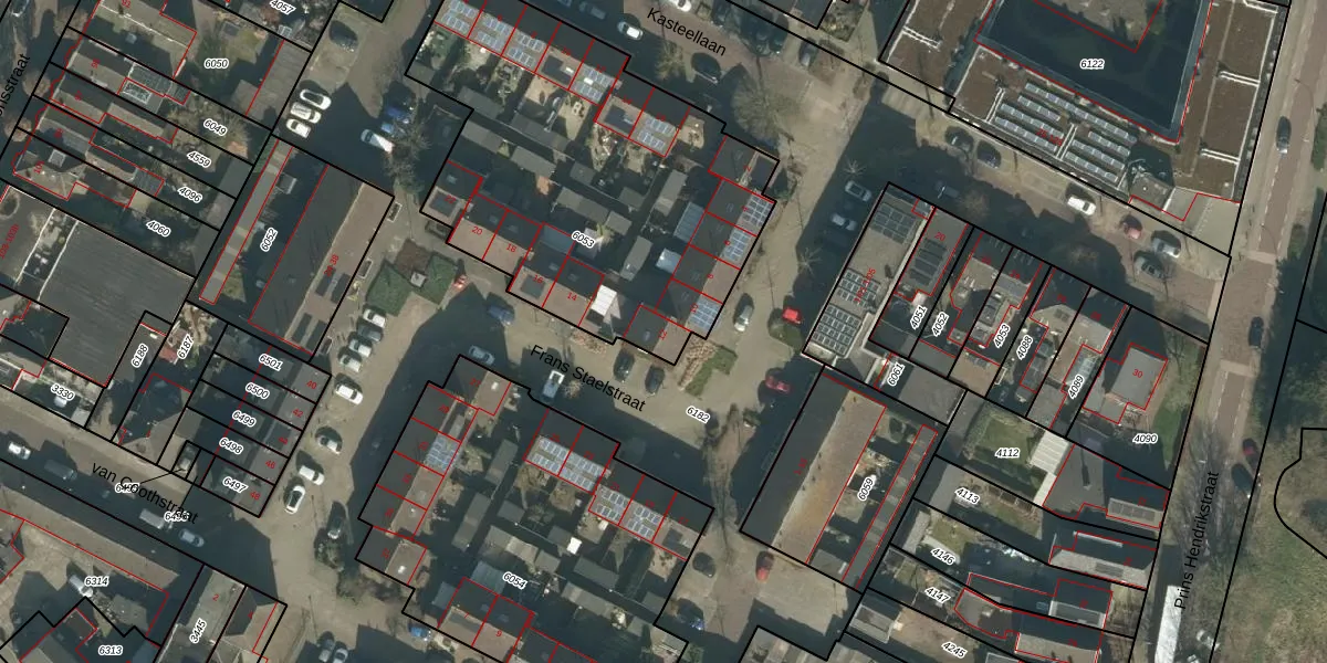 Het perceel waarop Frans Staelstraat 12 staat heeft een oppervlakte van 1902 m². Dit is een zeer groot perceel. De perceeloppervlakte wordt geregistreerd door het Kadaster. Gedetailleerde informatie over de maten van dit perceel kunt u vinden in het rapport Kadastrale kaart met maatvoering van Frans Staelstraat 12.