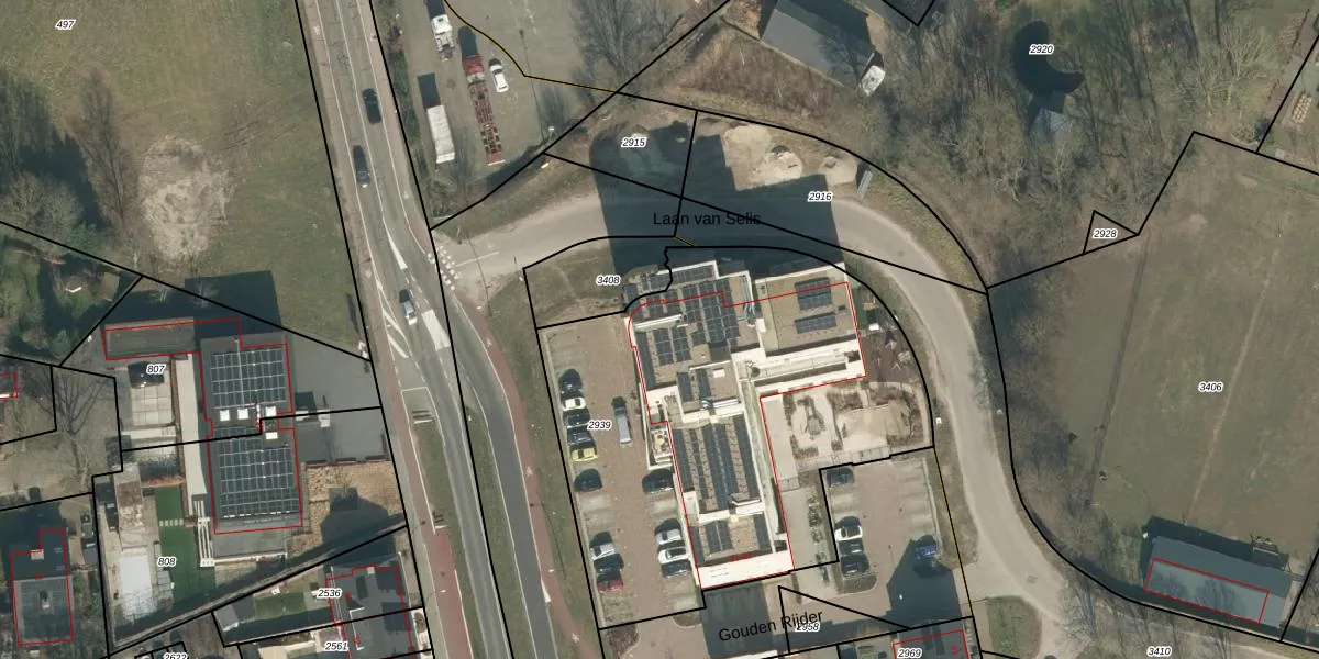 Het perceel waarop Gouden Rijder 49 staat heeft een oppervlakte van 2330 m². Dit is een zeer groot perceel. De perceeloppervlakte wordt geregistreerd door het Kadaster. Gedetailleerde informatie over de maten van dit perceel kunt u vinden in het rapport Kadastrale kaart met maatvoering van Gouden Rijder 49.