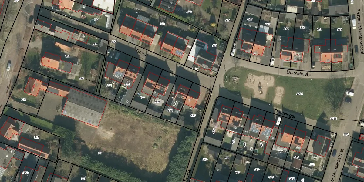 Gebruik de zoekbalk of klik op een perceel voor informatie over de adressen binnen dit perceel.