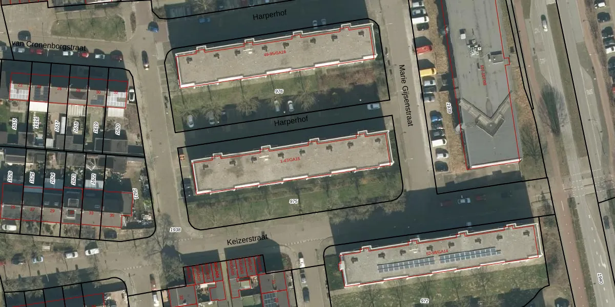 Het perceel waarop Harperhof 19 staat heeft een oppervlakte van 1940 m². Dit is een zeer groot perceel. De perceeloppervlakte wordt geregistreerd door het Kadaster. Gedetailleerde informatie over de maten van dit perceel kunt u vinden in het rapport Kadastrale kaart met maatvoering van Harperhof 19.