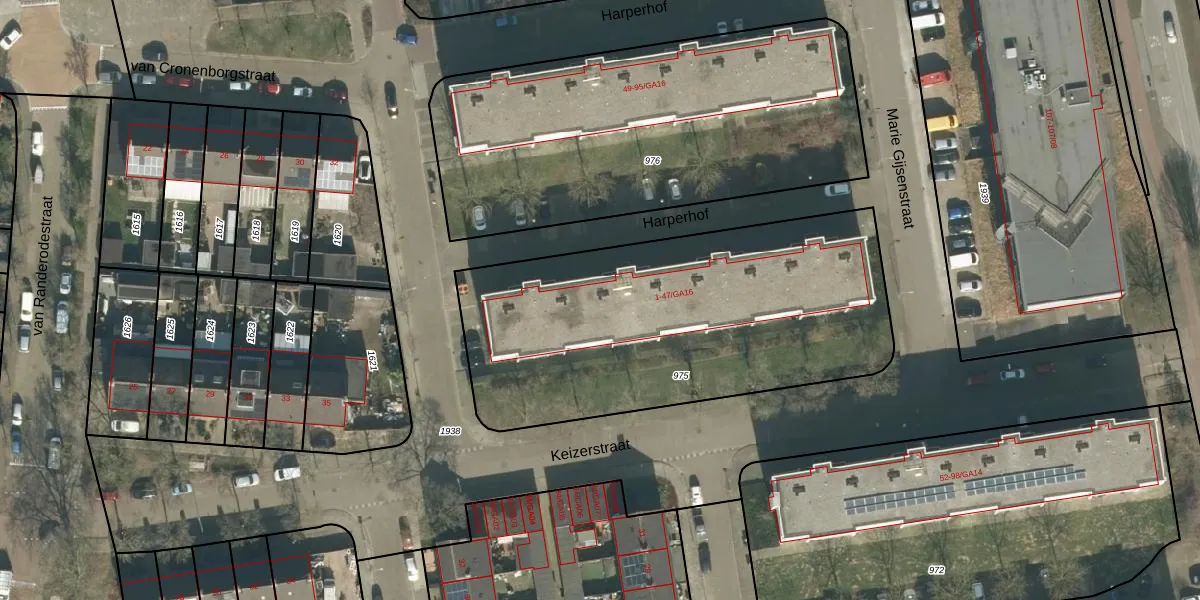 Het perceel waarop Harperhof 33 staat heeft een oppervlakte van 1940 m². Dit is een zeer groot perceel. De perceeloppervlakte wordt geregistreerd door het Kadaster. Gedetailleerde informatie over de maten van dit perceel kunt u vinden in het rapport Kadastrale kaart met maatvoering van Harperhof 33.